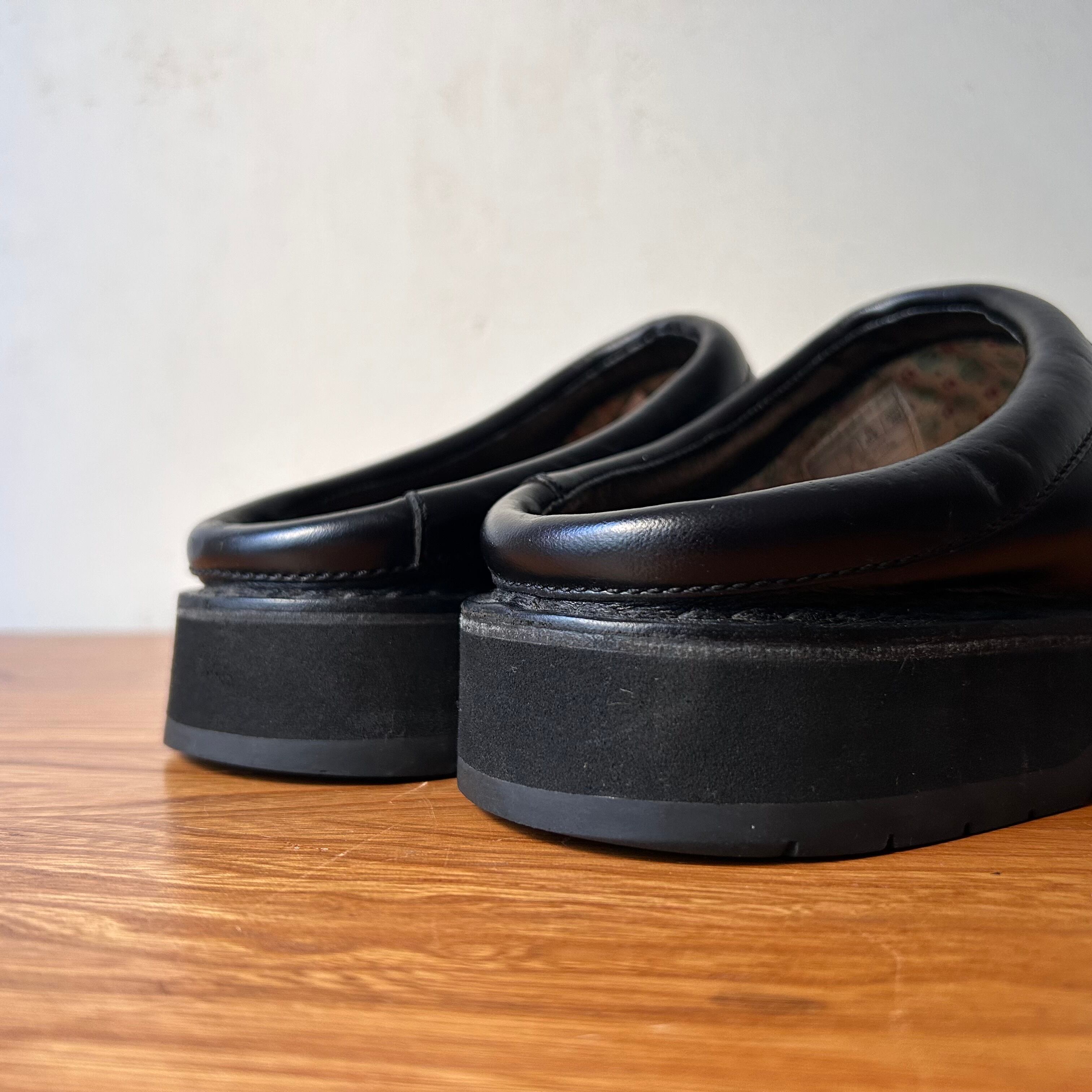 90s Simple / Black leather slip-on clogs